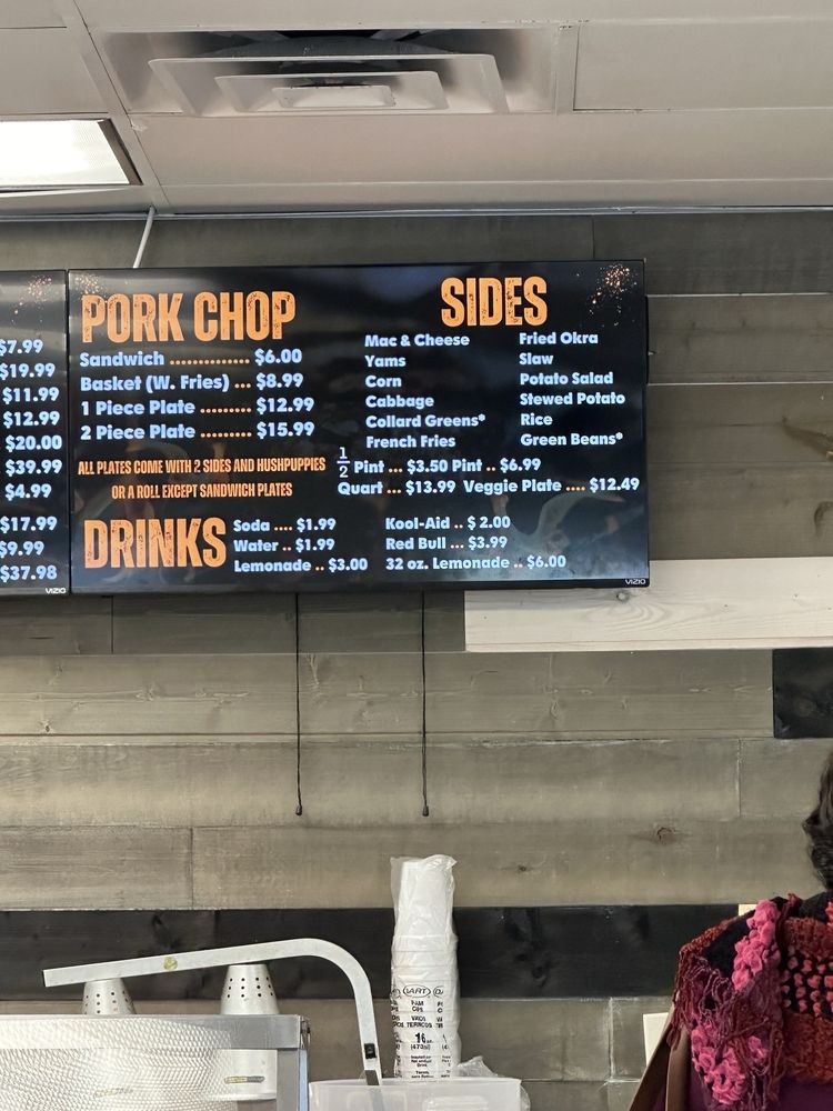 Thick cut of meat from a pig typically cut from the spine. Also pork chops can be smothered.